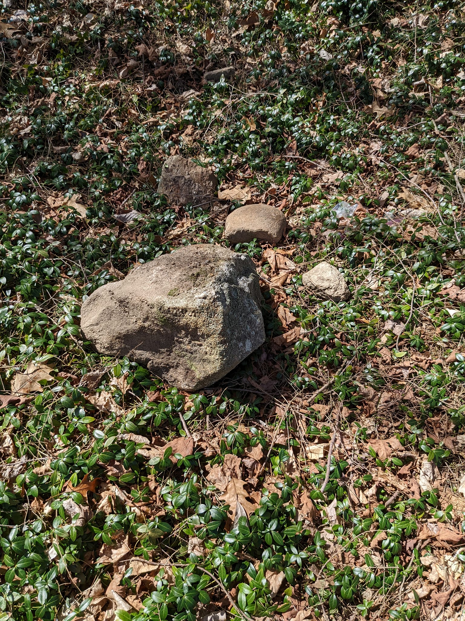 Spring clean-up took me into the south side yard with a leaf blower, and I found a few stones had fallen from the retaining wall...
